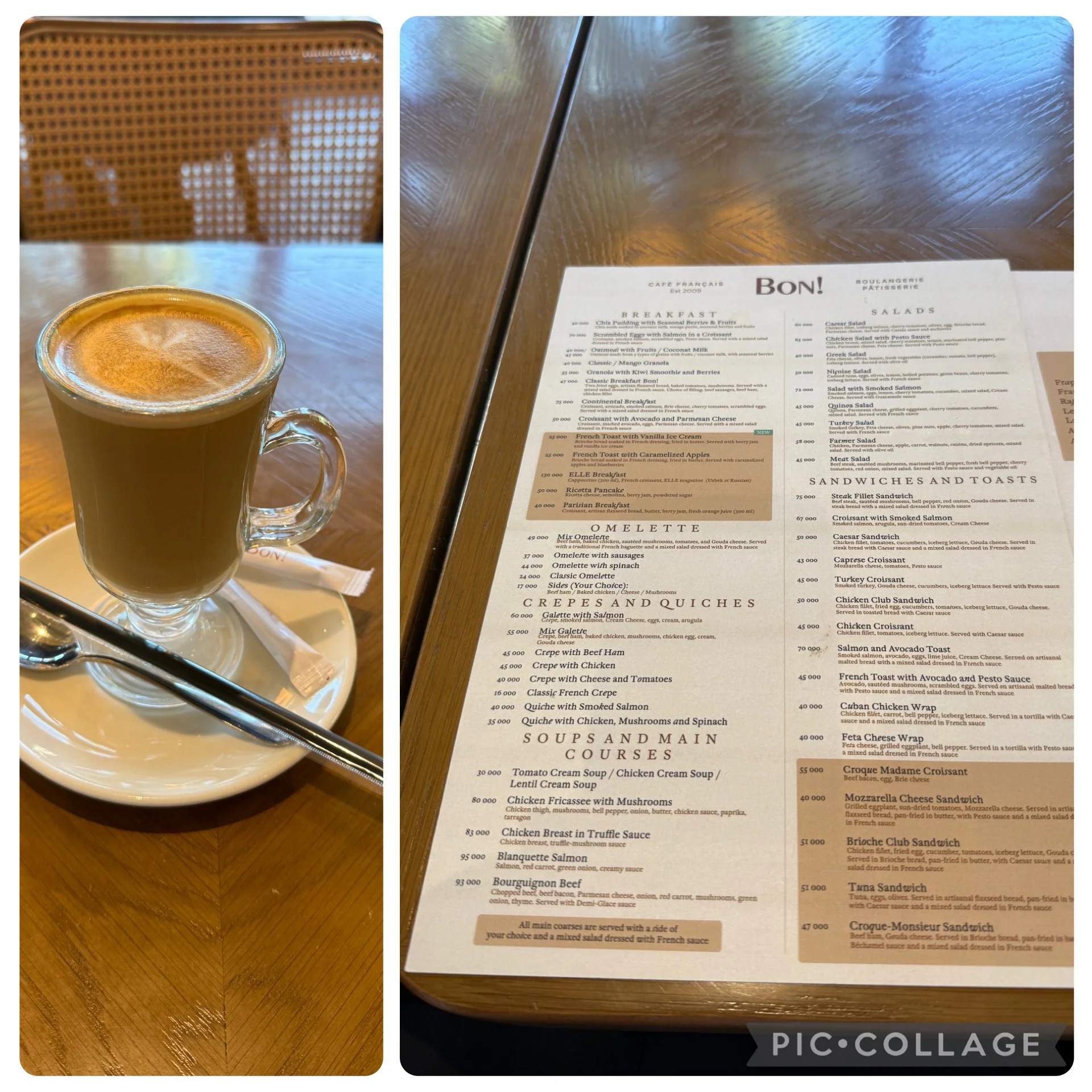 It was still early once landed after such an early flight so we went to a local coffee shop Bon a French boulangerie and patisserie the food look yummy and coffee smelt wonderful. The has many cakes and croissants plain and filled. Mixed omelet my choice it had beef ham….. no pork products more like a pastrami