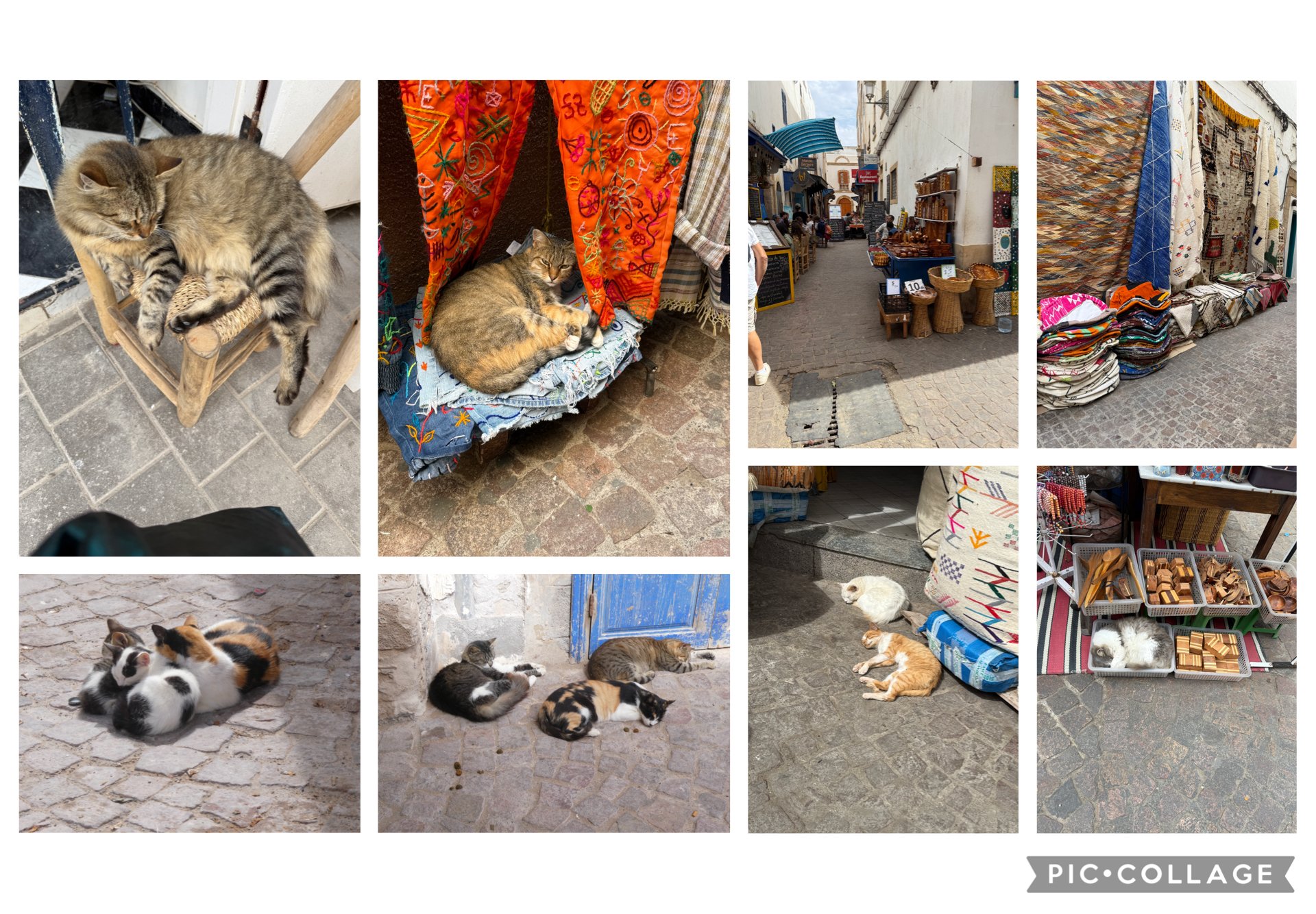 The cats of Essouria everywhere you walk there were cats sunning themself all well fed none ran away when you reached out to pat. Why so many cats they say Mohamed had a pet cat so I guess you are closer to him if you had a cat