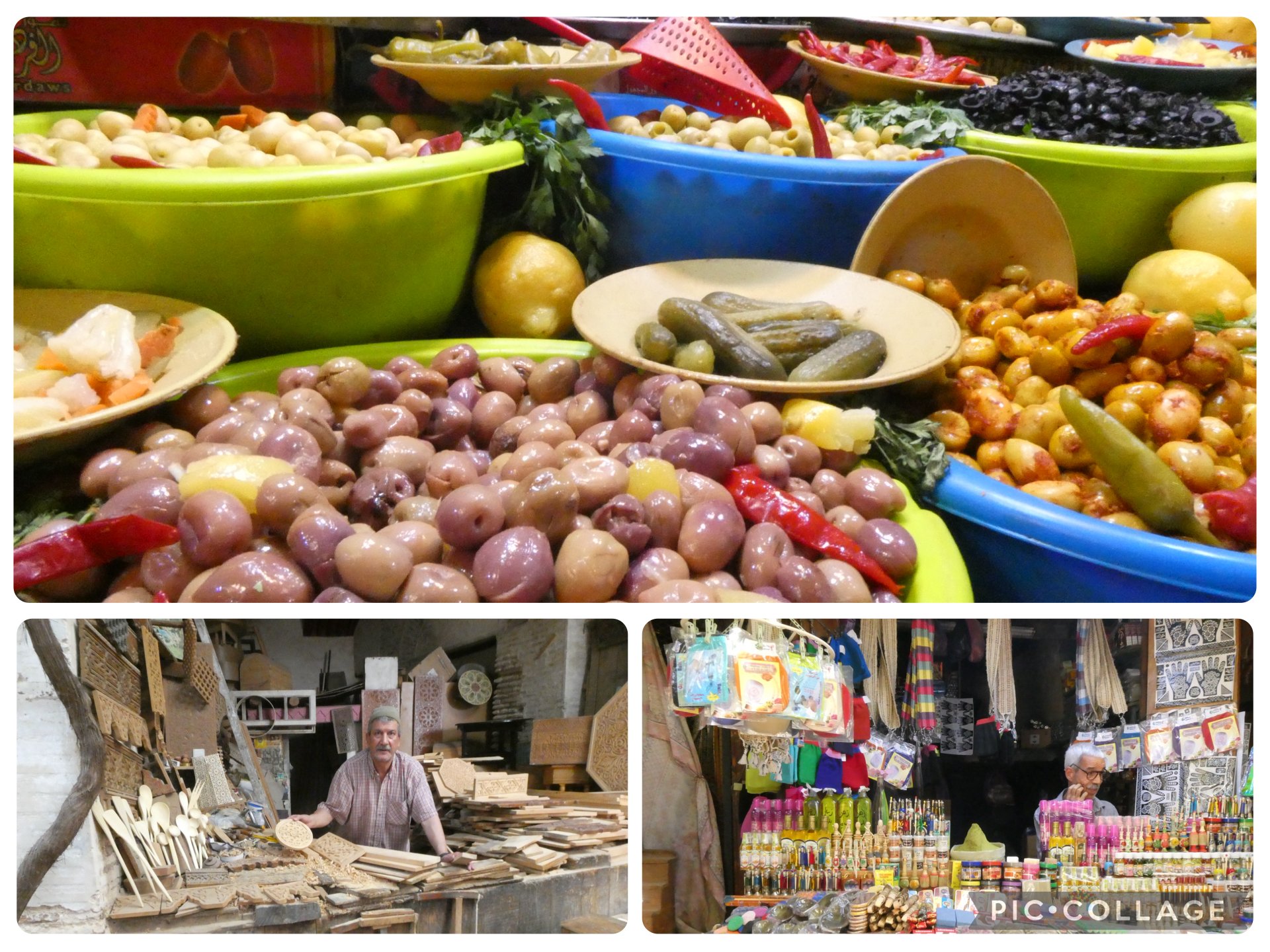 A day to explore Fez el-Bali (old Fex) said to be the cultural hart of Morocco it was built in the 8th century by Moulay Idris I. It is the imperial capital and centre for learning. We were told there were 9,000 laneways and alleys and souks. I’m not sure how many I saw but our group of 8 plus our 2 guides and a local guide were there to help lead us through the narrow lanes it was a task as if you got lost I’m not sure if you be able to find your way out at times WhatsApp didn’t work as you had no reception I think we spent 4-5 hours plus lunch truely a wonderful place full of people, traditional crafts, food , university, tannery put it on you buck list.