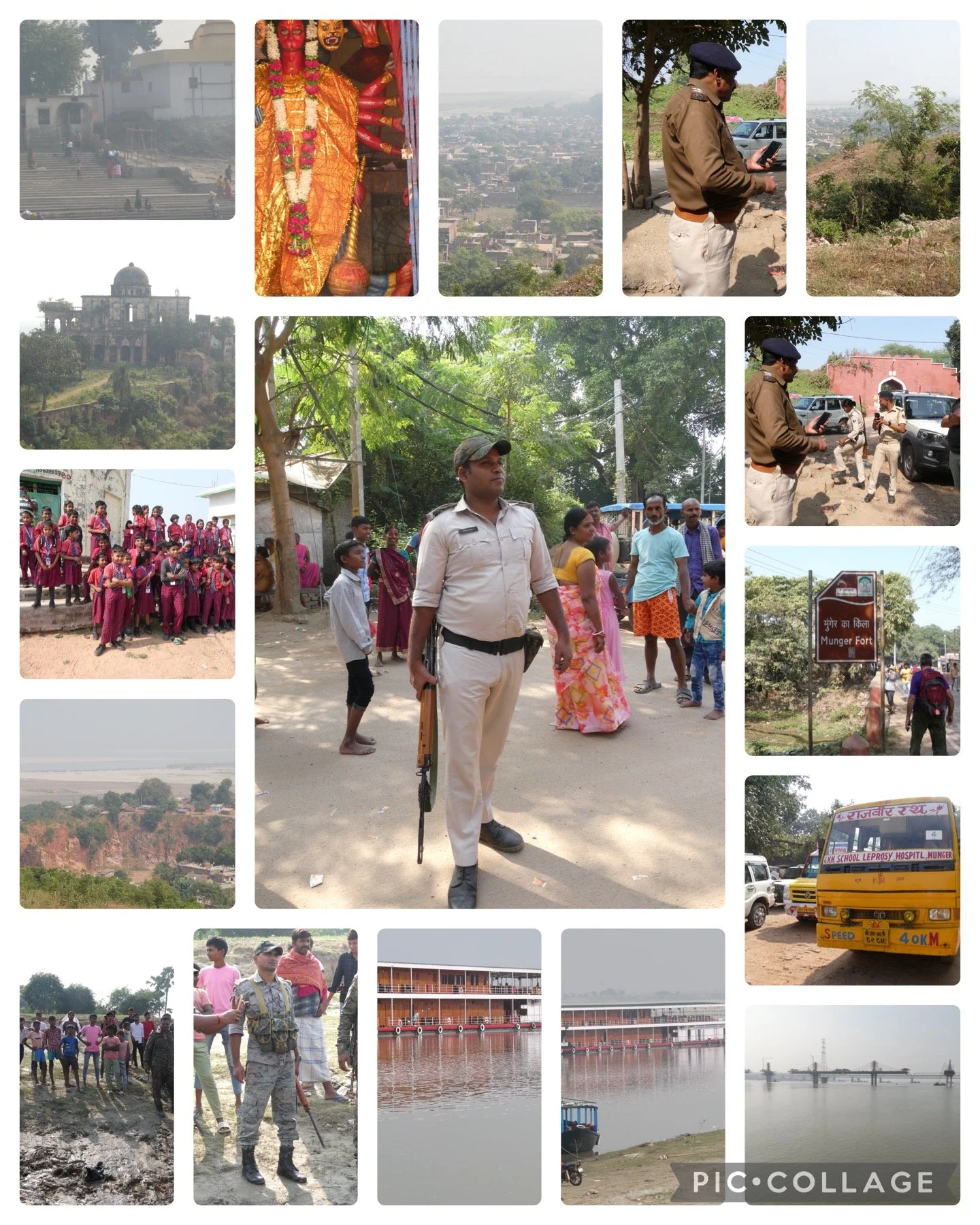 Today we got of the boat in Munger a large industrial city historical it has a lot of history dating back to 1716. The landing was easy but to get off the small boat was a little difficulty due to the high number people bathing and the high wet steps. But the crew were willing to offer a hand or arm for support to help stabilise yourself on uneven damp surface. We were to be transported around in cars 3 to a car and to our surprise we had a police and military escort first stop was the “high street” I didn’t take photos as I was on a mission I had had technology issues overnight need extra cables and we only had 15 minutes but the policeman helped me find the shop and negotiate a good price. Then to a Munger red fort and to the east British India cemetery, we could have walk but a police escort always makes it easier.