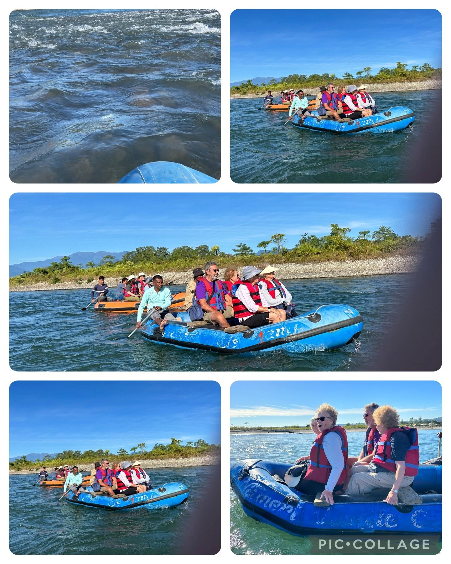 Today it was up before sunrise as we needed to be on the road by. 7.00am as we had to drive 2 hours before so we could go on a float down the river. As the sun rose it burnt of the fog to present clear skies and beautiful sunshine. Once we arrived it was. 4 to a boat with 2 rowers/guides at the back. The river is renowned for its birdlife so there was lots of anticipation on what birds we would possible birds for. Bhutan or Iran who knows as long as they stayed away from me! Once you had your life jacket on getting into the boat was easy step over and take a seat how easy is that admit the wooden seat was very very hard after two hours. The water was clear fast moving between .70 cm to 100 cm. It was cold when you were splashed occasionally. There were some small rapids to navigate but a very enjoyable way to spend 2 hours in the sunshine with the Himalayan mounts as your back drop