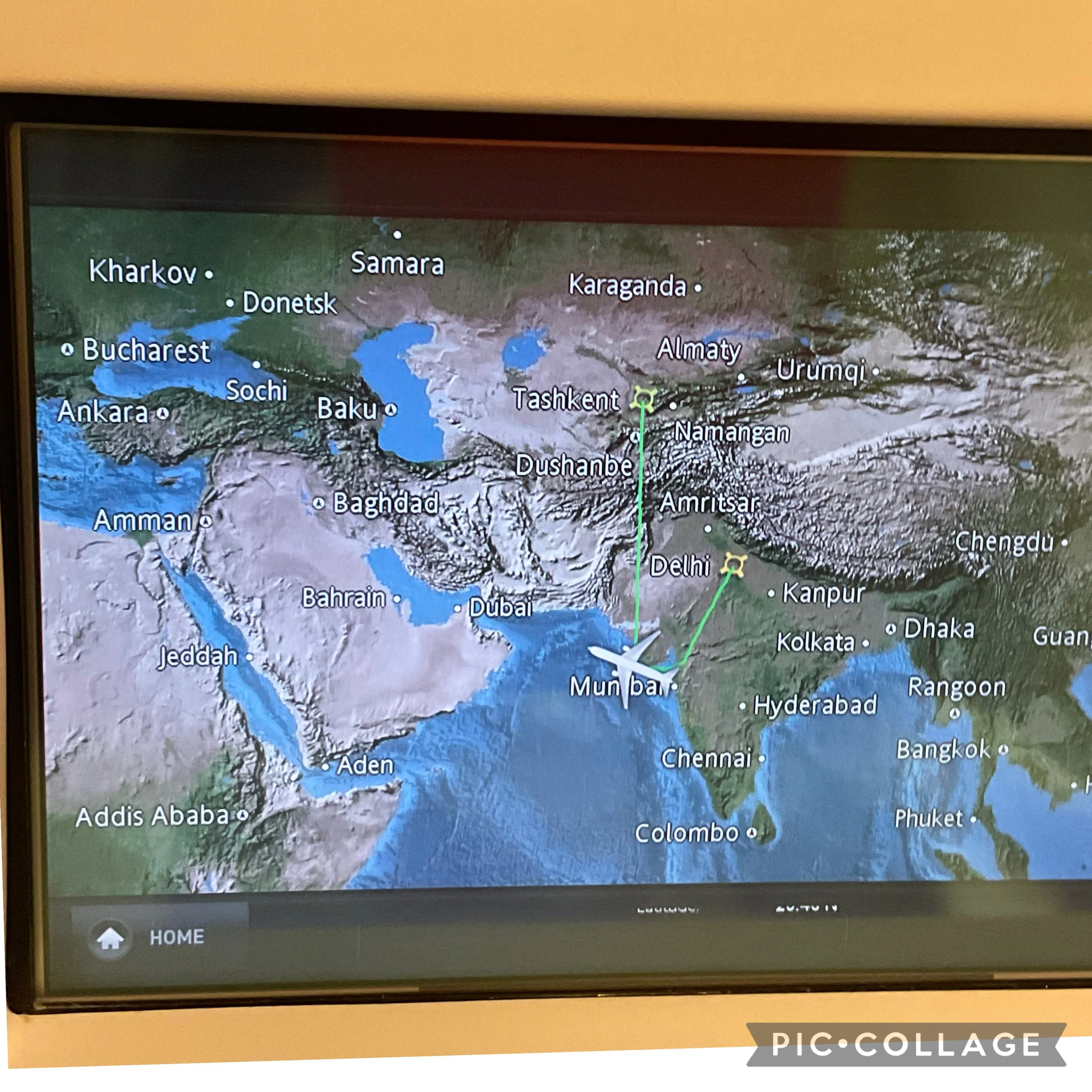 My flight to Tashkent Uzbekistan was just after lunch arrived at the airport in plenty of time to discover chaos and confusion at the Uzbekistan airways counter in that no one was there and the queue was long. The driver went to information to discover it was delayed no time given on how long the board told you nothing . Nothing you can do but stay calm so I sat and waited the driver pointed out the counter the checking would occur and I’d spied other travellers going to Tashkent eventually at 4.00pm you could check-in I should be arriving a this time. The board still didn’t say what time we leave, I made to the Lounge and finally saw we would depart at about 6 pm no other context. At last on the plane i sat with a Lady from Kazakhstan (very good English) she had been in Delhi for a week while her mother had medical treatment, We watched the flight route on the screen only to discover we were not going north over the mountains but south towards Mumbai then west towards Dubai then north to Tashkent the journey was now 6 hours omg to go around the troubles north of India I arrived just before midnight but let’s put it into perspective I had to be back at the airport at 6.00 am for a flight to Buhkura.
